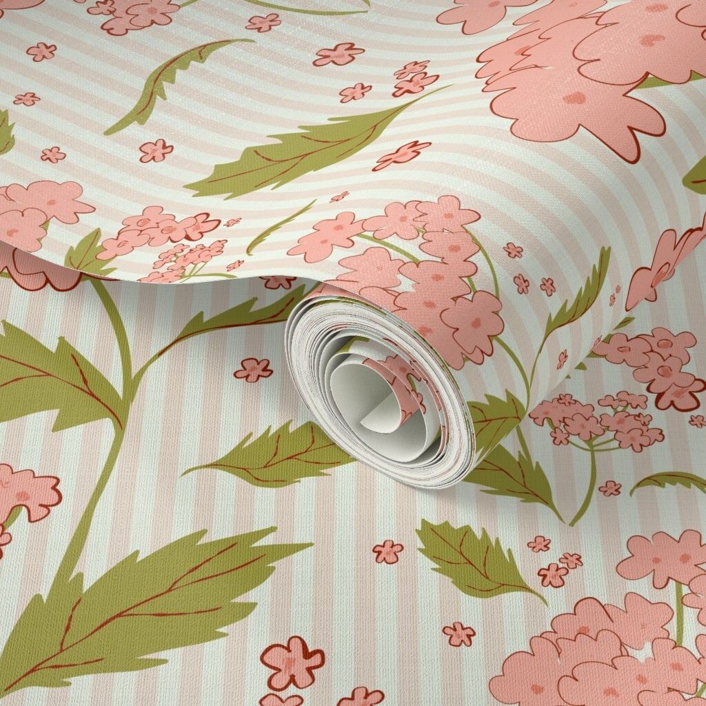 This delightful floral pattern perfectly captures the essence of a 70s thrift store find inspired nursery - those unexpected treasures that make your heart skip a beat. The soft pink and citrine hues are cheerful and inviting, making it an ideal choice for a space meant for nurturing and play. The combination of floral motifs and subtle stripes adds a touch of whimsy and nostalgia, while fresh enough to maintain a cohesive look that can grow with your child to toddlerhood and beyond.